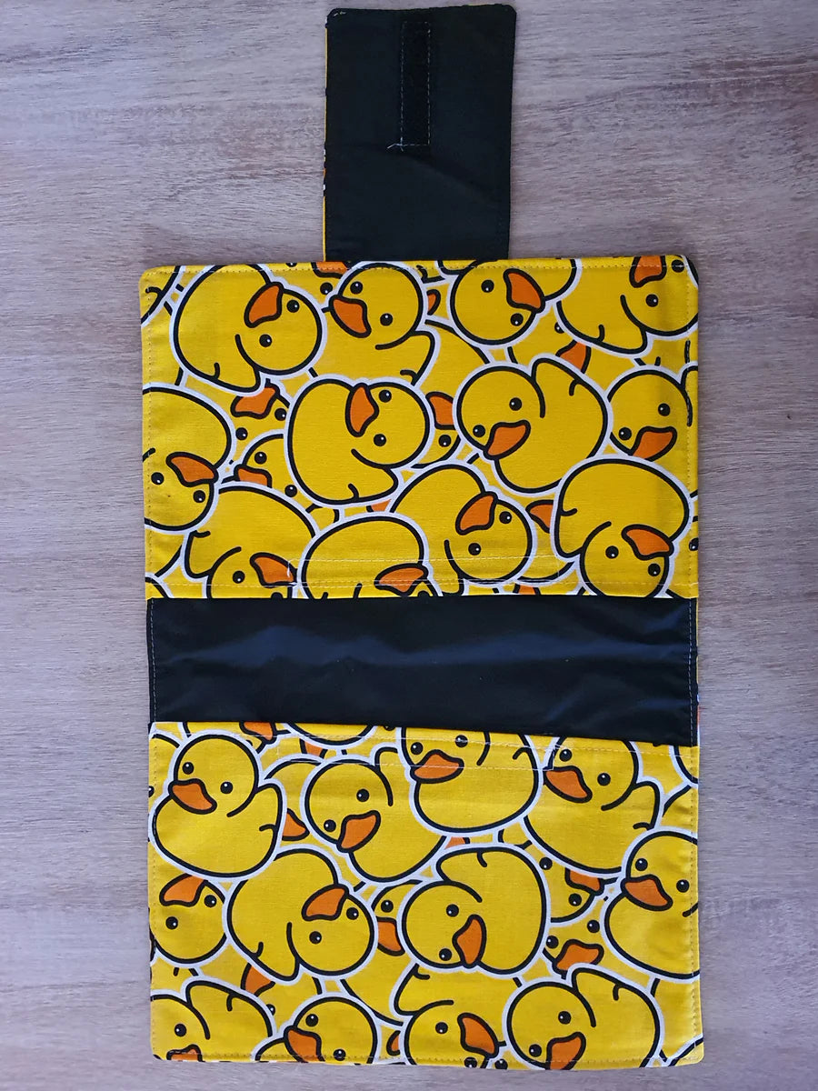 PLEASE NOTE- Buzzing bees pattern shows nappy wallet design in vertical design Rubber duck pattern shows nappy wallet in horizontal design. **Both of these nappy wallets are not included in the sale it is to show you what you will receive in the main fabric listed below.