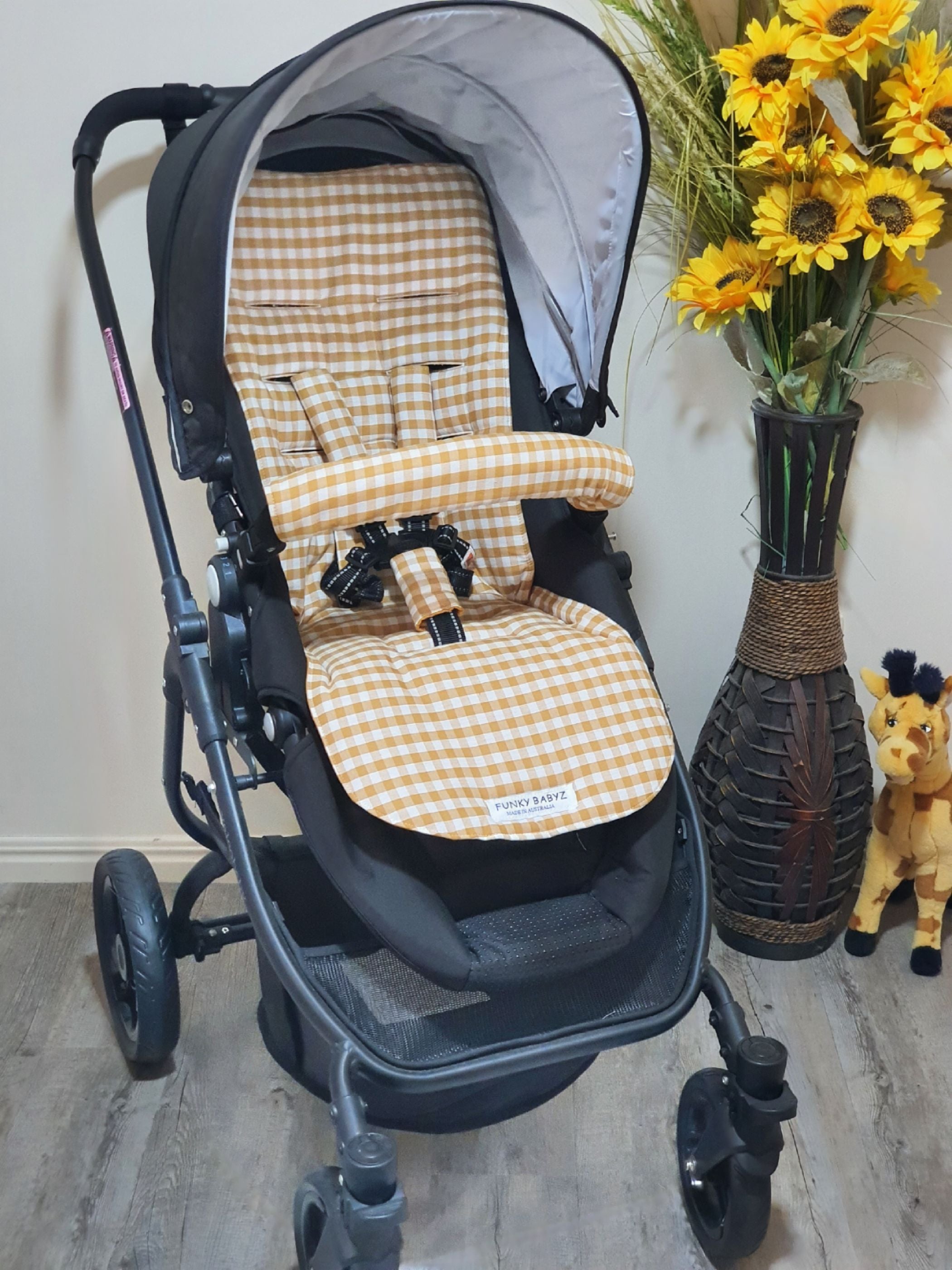 Pram/stroller seat liner-Australian wombats and wattle