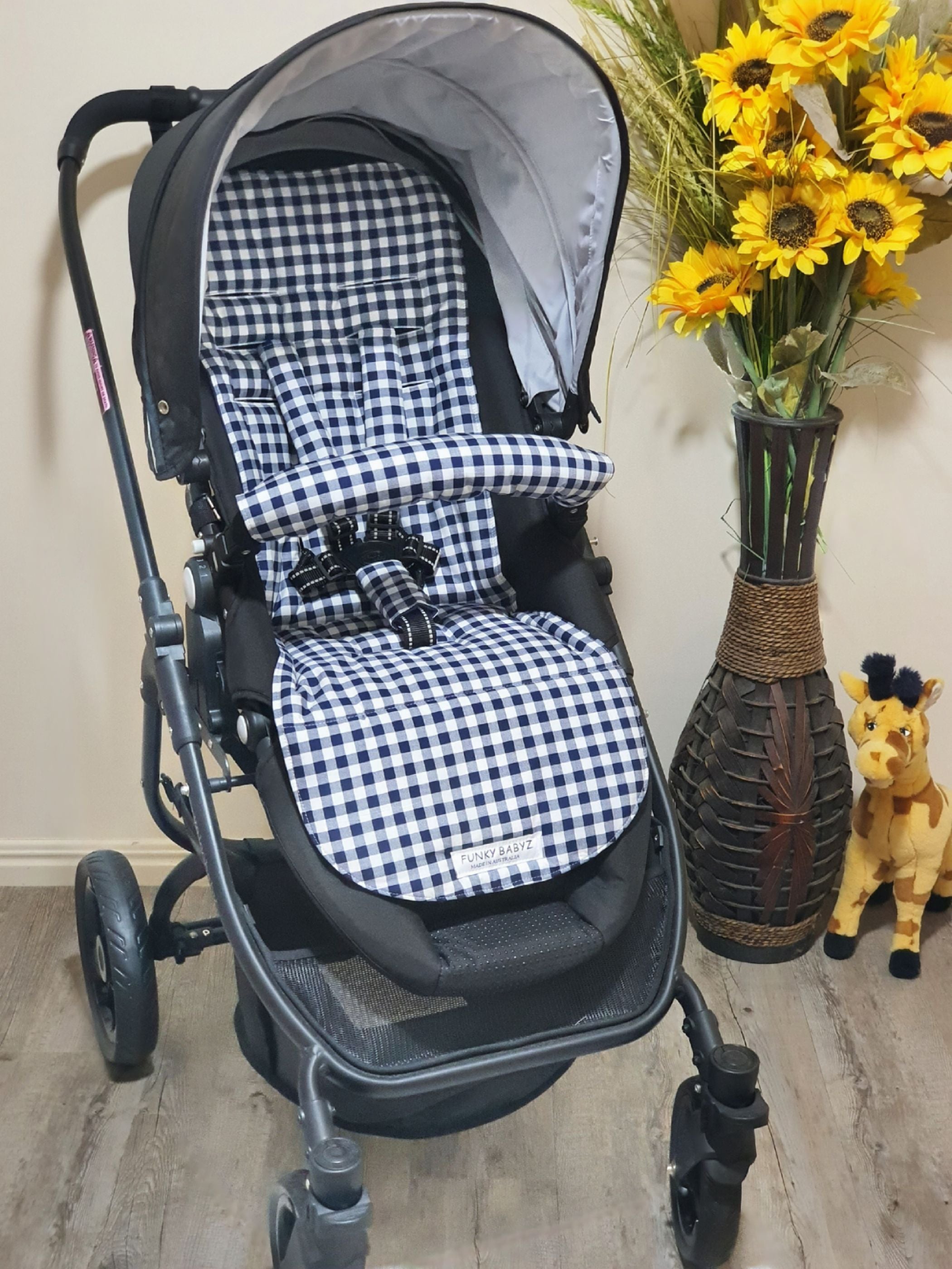 Pram/stroller seat liner-Navy blue gingham,small squares